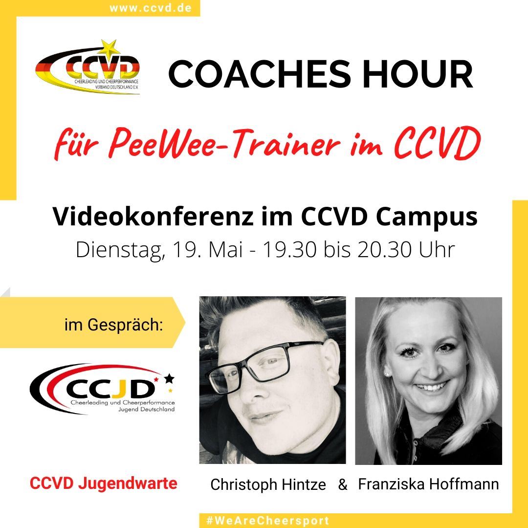 Nun laden Euch die CCVD Jugendwarte zur nächsten Coaches Hour in den CCVD Campus ein. Im Mittelpunkt stehen diesmal Eure Fragen rund um Eure PeeWees wie z.B. Wie gestalte ich das PeeWee-Training unter der Maßgabe der körperlichen Distanz? Peewees & Meisterschaften – eine besondere Herausforderung?