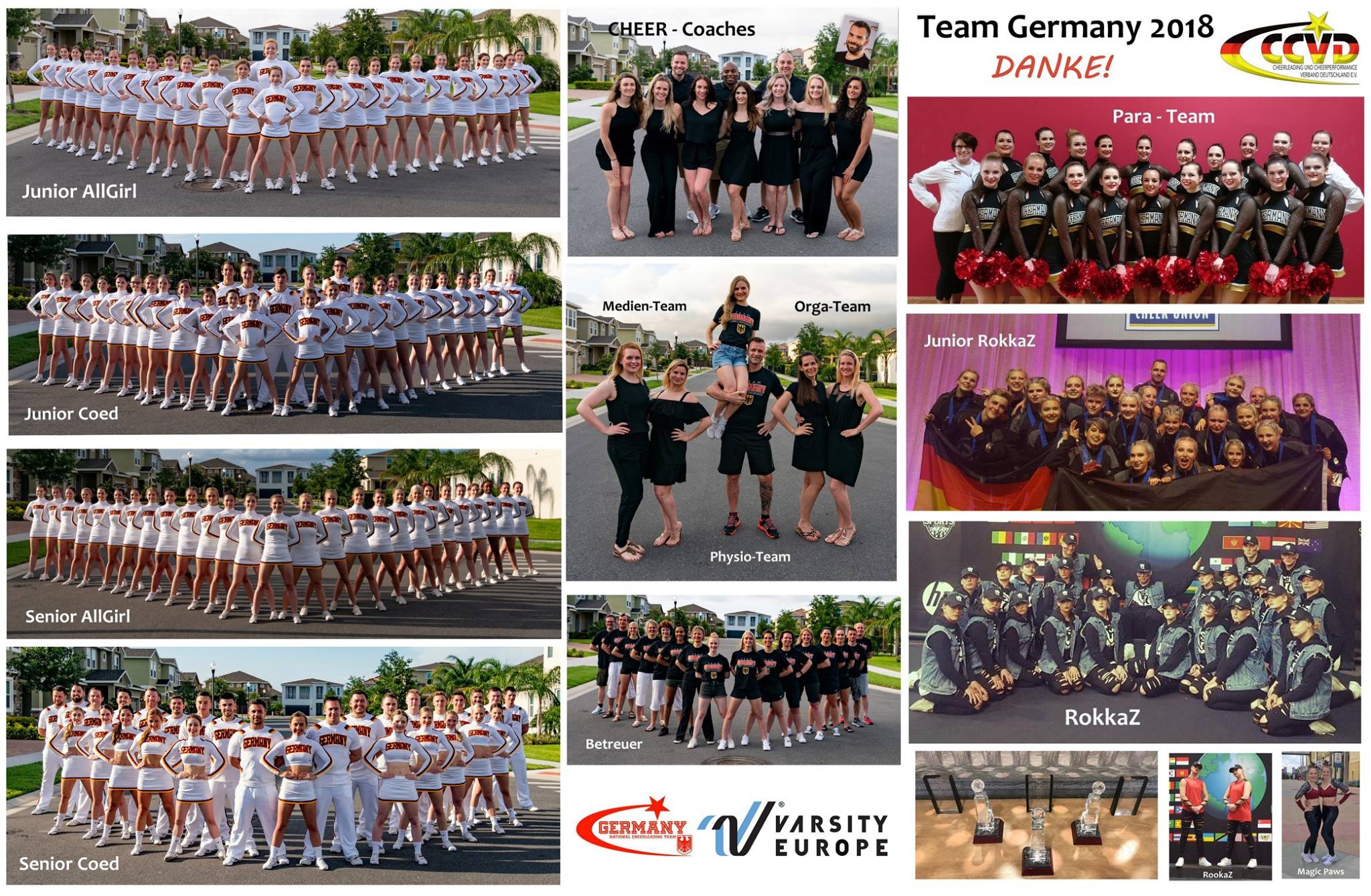 Aber nicht nur die sportliche Komponente, sondern auch der Zusammenhalt unter den Aktiven und den Trainern, die aus 28 CCVD Vereinen gemeinsam bei diesem Team Germany Projekt als Einheit agieren, hat beeindruckt und für viele Gänsehautmomente gesorgt. Unser Dank gilt diesen Vereinen, die ihre Sportler und Trainer für dieses Projekt freistellen und damit zu diesem deutschen Cheerleading-„Frühlingsmärchen“ entscheidend beigetragen haben. Der vereinsübergreifende Nationalkader ermöglicht eine effiziente Förderung des Cheerleadingsports auf nationaler Ebene. Die Sportler und die Trainer des Projektes werden zu Multiplikatoren des Know-hows und der Erfahrungen und unterstützen dadurch nachhaltig die weitere Entwicklung des Sports in Deutschland.