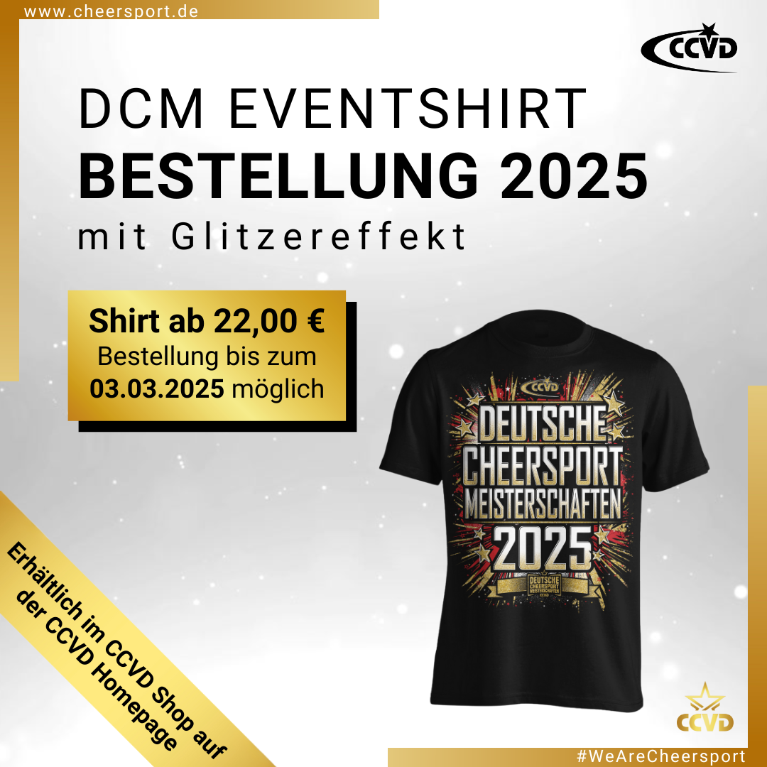Ihr habt entschieden! Ab sofort könnt Ihr Euer Eventshirt für die Deutschen Cheersport Meisterschaften 2025 im CCVD Online Shop vorbestellen!
