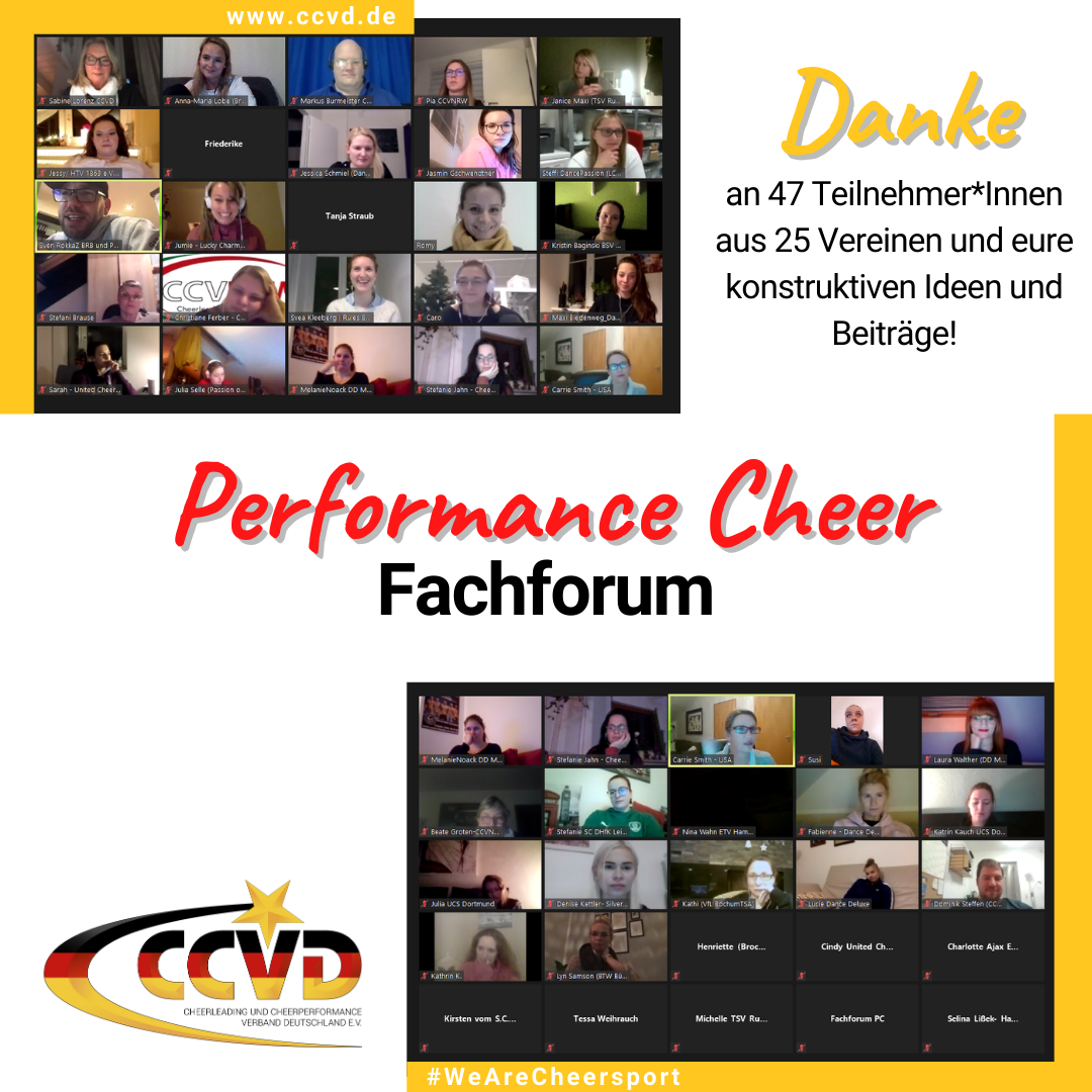 Wir danken Caro für ihren bisherigen Einsatz und wünschen ihr ganz viel Erfolg in ihrem neuen Amt und bei der Verwirklichung der vielen Performance Cheer Themen gemeinsam mit dem restlichen Performance Cheer Ressort und dem CCVD.