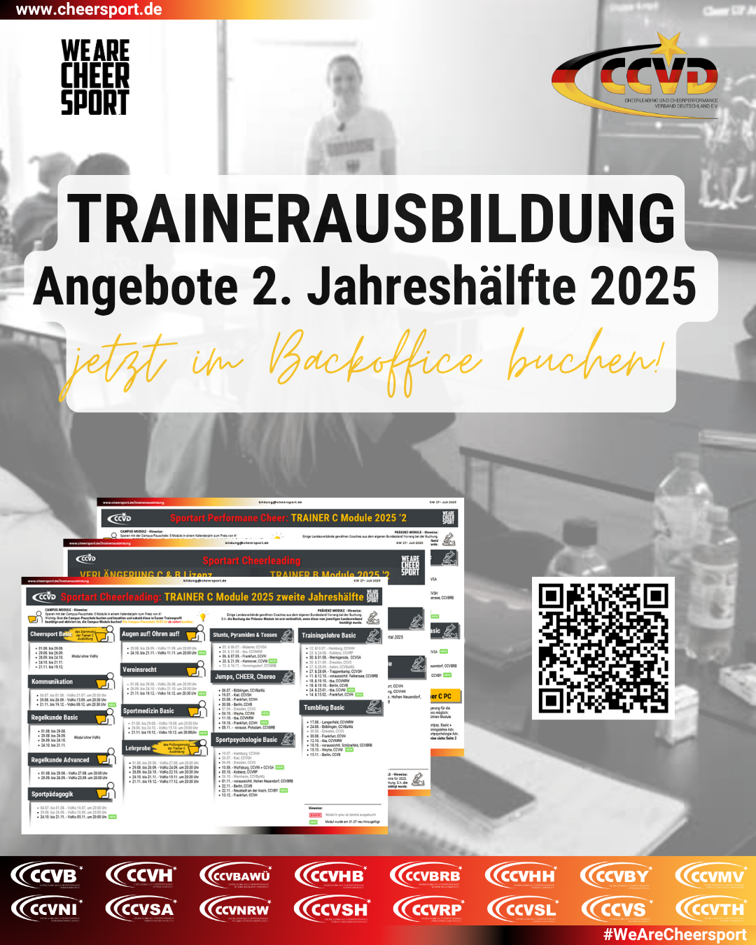 Der Cheersport Basic Kurs ist der Einsteig in die Trainerausbildung. Hier werden die Grundsätze rund um den Verband, das deutsche Sportsystem und die Trainerausbildung vermittelt.